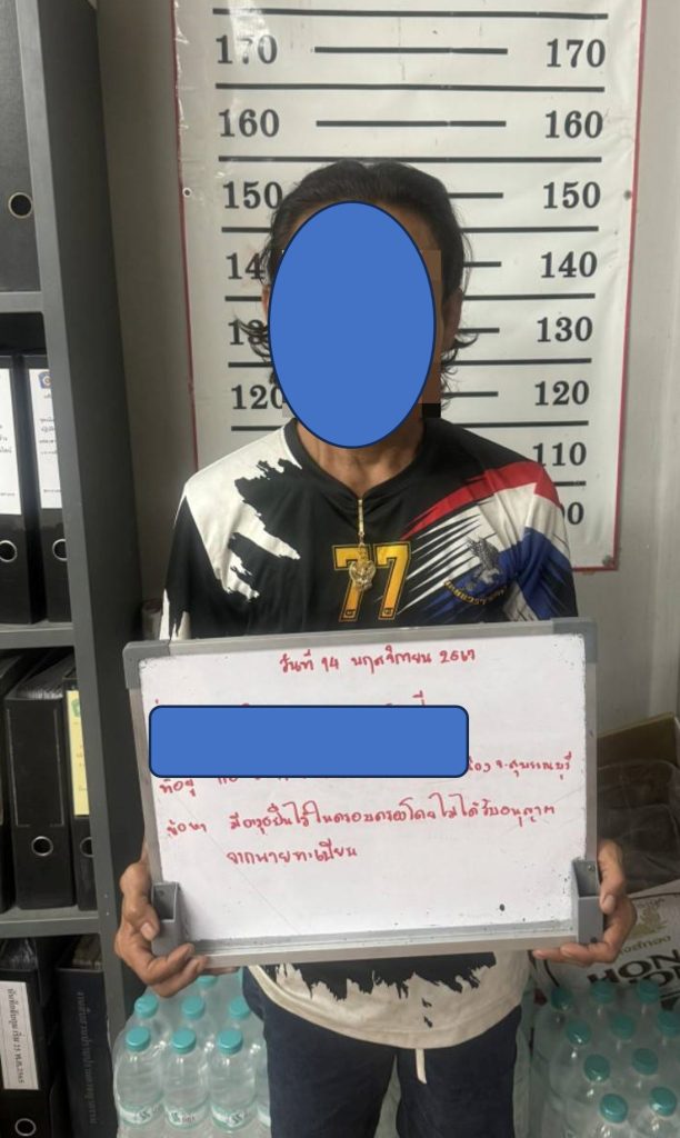 พร้อมกับได้ตรวจค้นตัวผู้ต้องหา/ผู้ถูกจับ พบสิ่งของและยึดเป็นของกลาง ดังนี้ – อาวุธปืนยาวไทยประดิษฐ์ (ปืนแก๊ป) จำนวน ๑ กระบอก