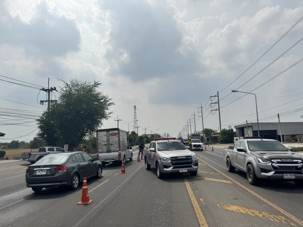 พร้อมกำลัง 12 นาย ว.43 จุดกวดขันวินัยการจราจร และจุดตรวจสัมพันธ์ป้องกันอาชญากรรม หน้าจุดตรวจจุดสกัดพระยาบันลือ ถ.3422(บางลี่ – ลาดบัวหลวง) ต.บางตาเถร อ.สองพี่น้อง จ.สุพรรณบุรี