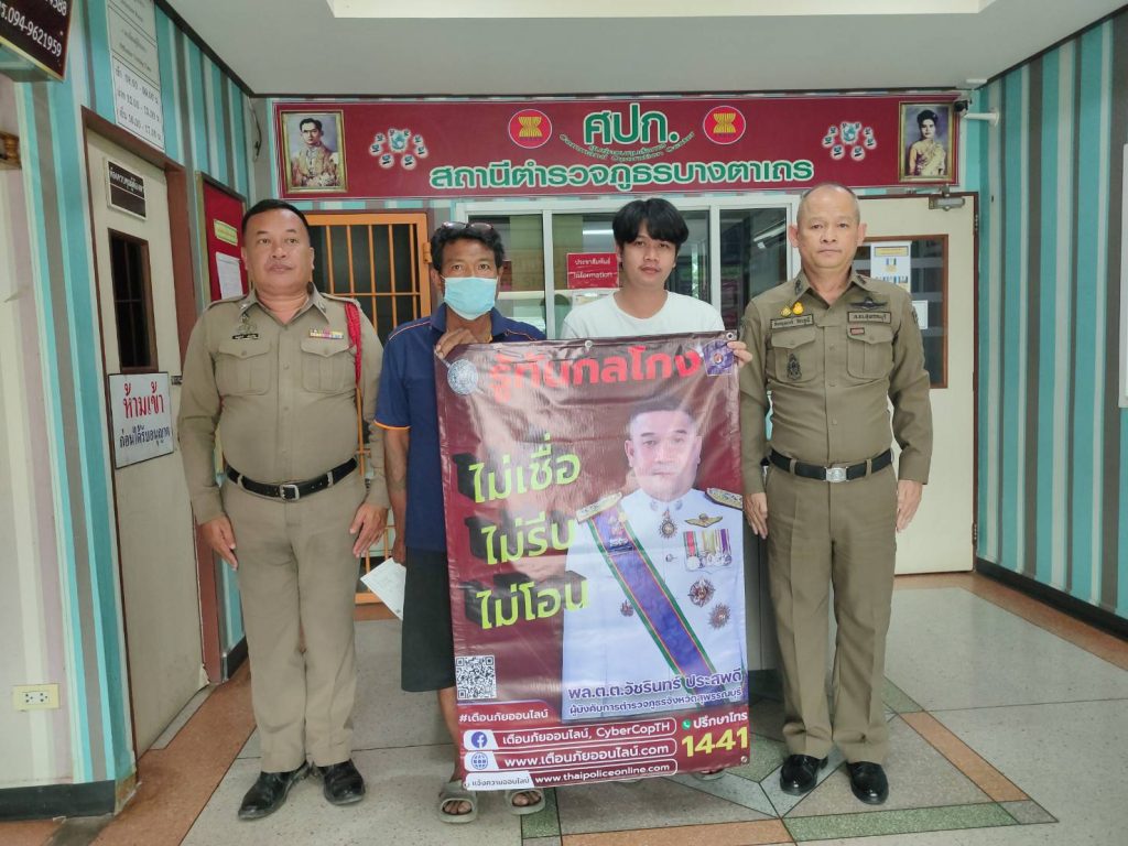 วันนี้ 25 พ.ย.2567 เวลา 17:30 น. พ.ต.ท.ชิษณุพงศ์ วัชรภูมิ รอง ผกก.(สอบสวน) สภ.บางตาเถร ประชาสัมพันธ์ รู้ทัน กลโกง ไม่เชื่อ ไม่รีบ ไม่โอน