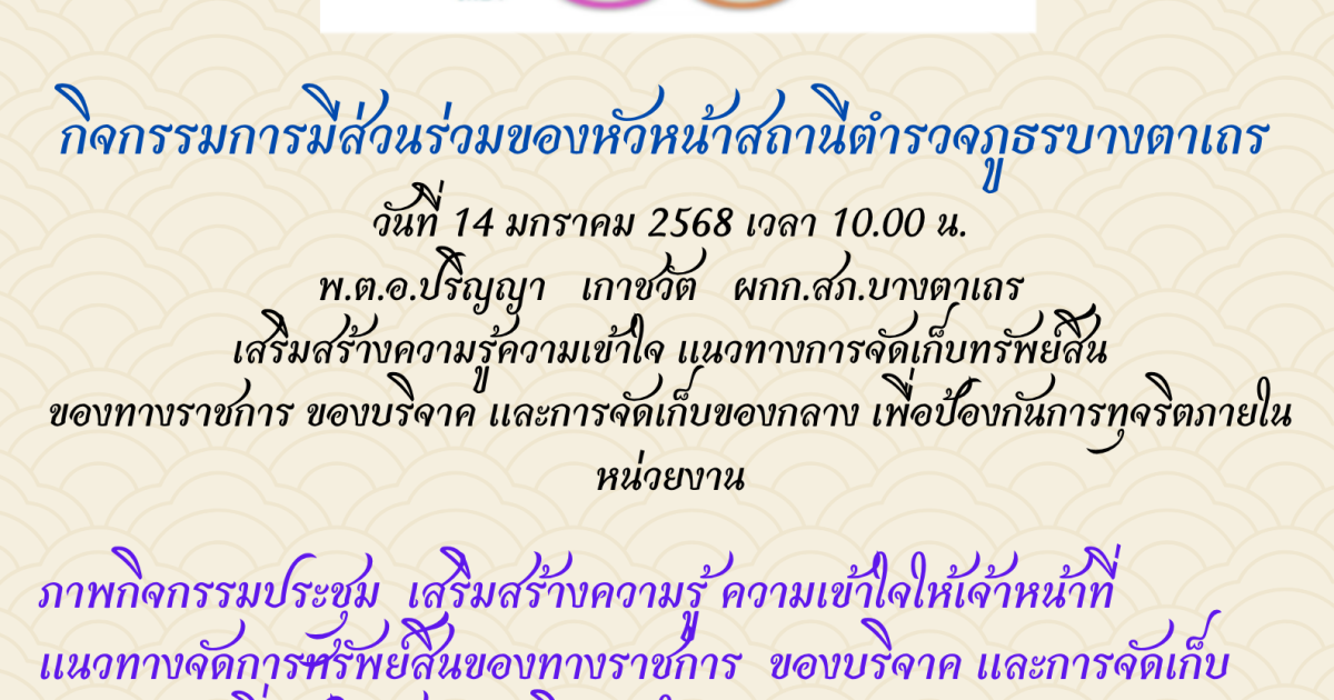 เสริมสร้างความรู้ความเข้าใจ แนวทางการจัดเก็บทรัพย์สิน ของทางราชการ ของบริจาค และการจัดเก็บของกลาง เพื่อป้องกันการทุจริตภายในหน่วยงาน