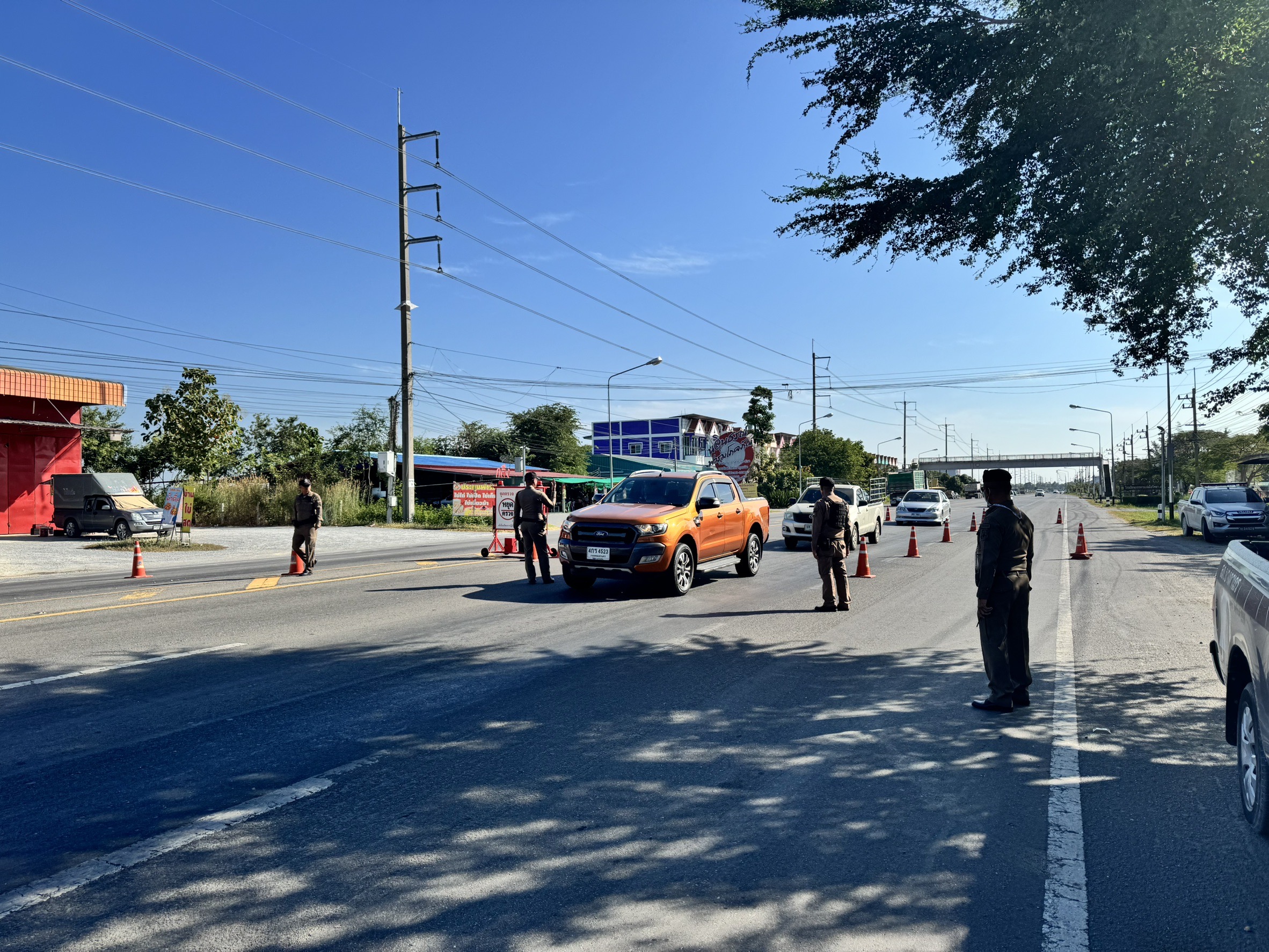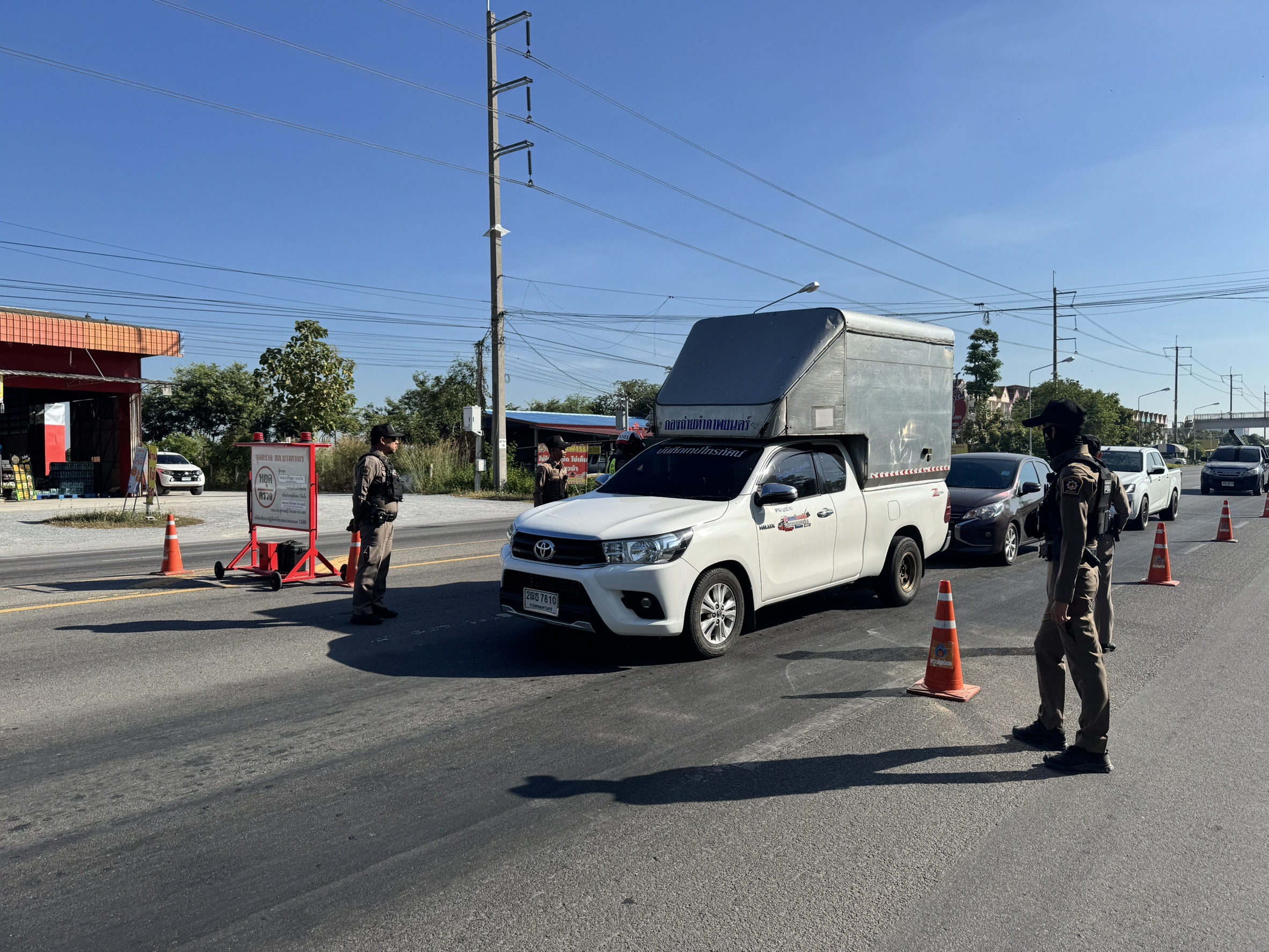 ตั้งจุดกวดขันวินัยการจราจร และจุดตรวจสัมพันธ์ป้องกันอาชญากรรม หน้าจุดตรวจจุดสกัดพระยาบรรลือ