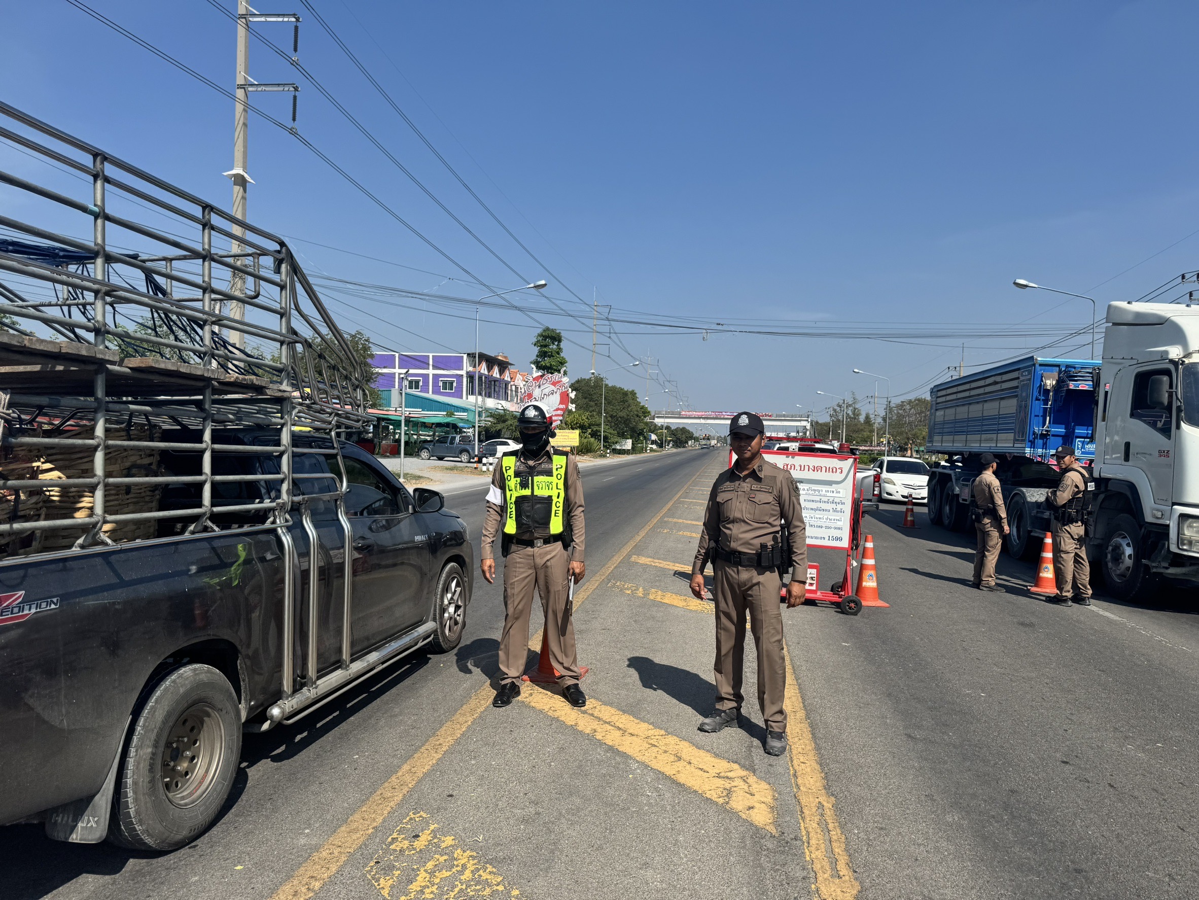 ตั้งจุดกวดขันวินัยการจราจร และจุดตรวจสัมพันธ์ป้องกันอาชญากรรม หน้าจุดตรวจจุดสกัดพระยาบรรลือ (บางลี่-ลาดบัวหลวง)
