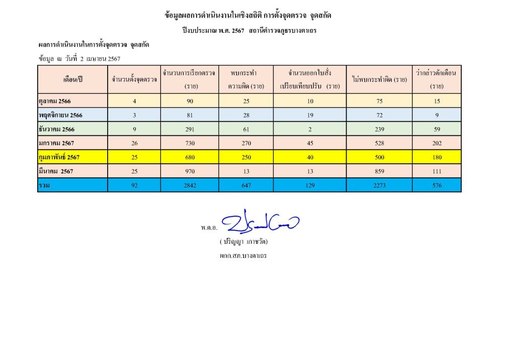 ผลการดำเนินงานของสถานีตำรวจ รอบ 6 เดือนแรก ของปีงบประมาณ พ.ศ. 2567