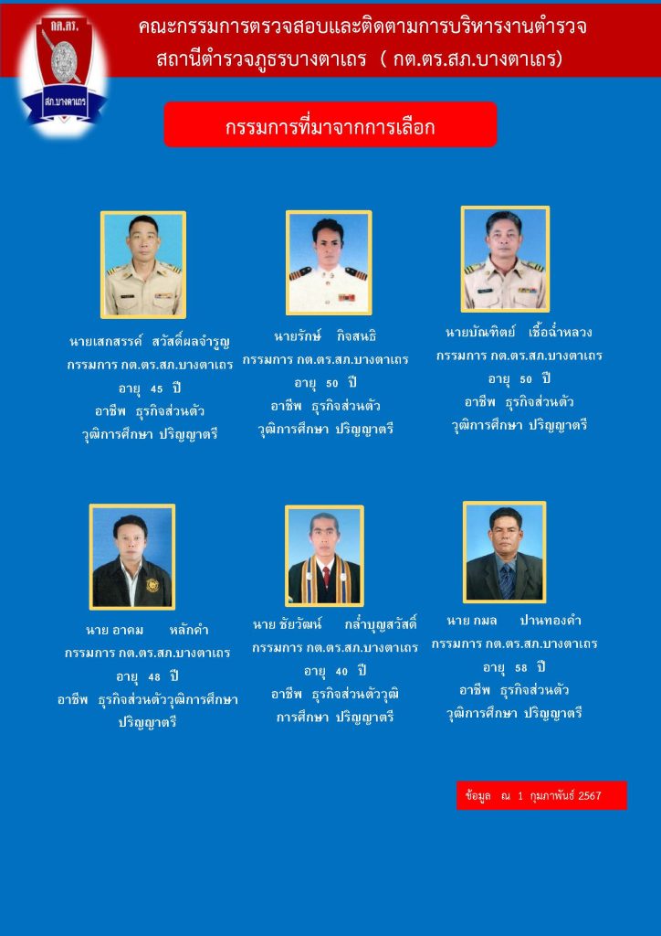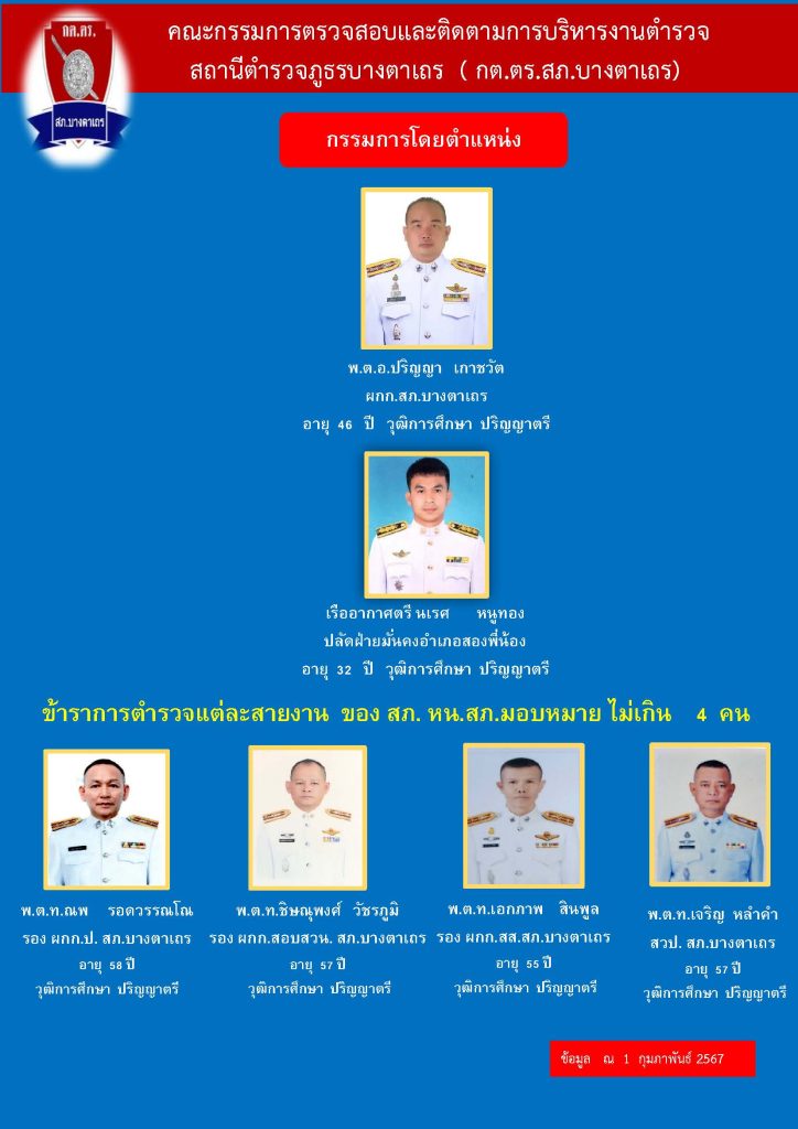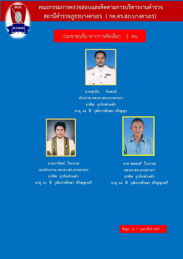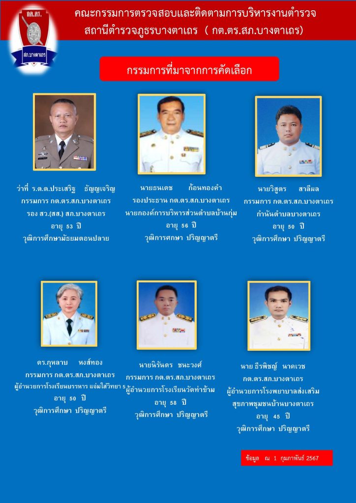 รายชื่อและประวัติคณะกรรมการตรวจสอบและติดตามการบริหารงานตำรวจ (กต.ตร.) ของสถานีตำรวจภูธรบางตาเถร