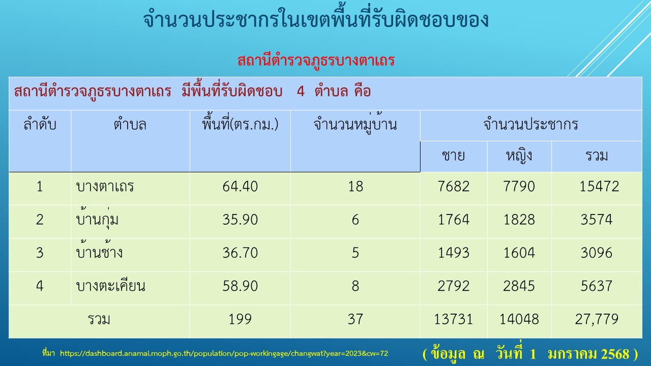 ข้อมูลสถานภาพสถานีตำรวจภูธรบางตาเถร และแผนที่ขอบเขตพื้นที่รับผิดชอบ